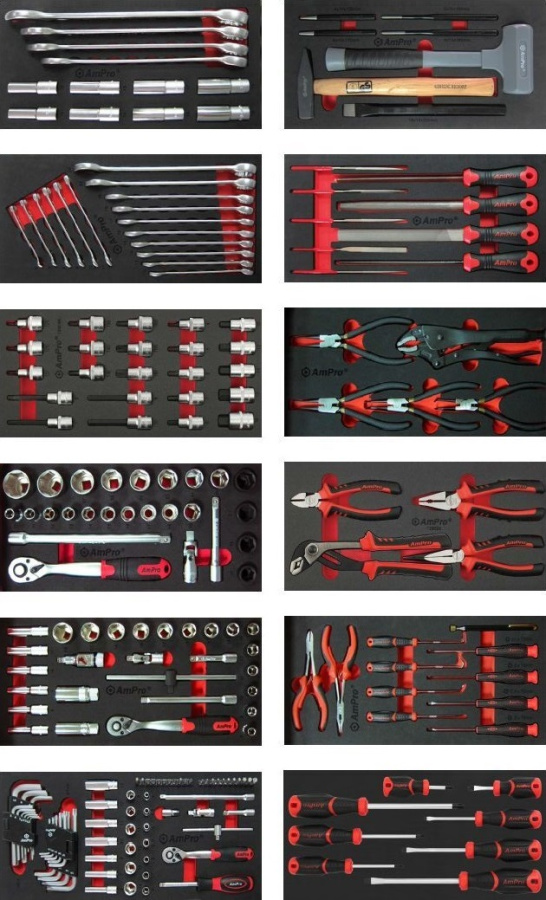 Приобрести T47313-02 Наборы инструмента 216 пр. в мягких ложементах (12 ложементов) от компании AmPro (Тайвань) из раздела Ложементы мягкие (VA серия)