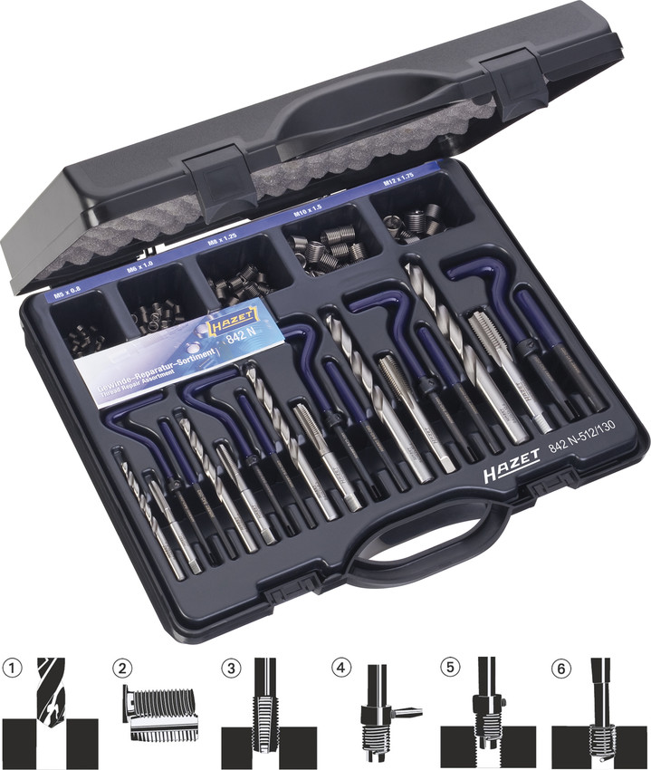 Набор для ремонта и восстановления резьбы Hazet 842N-512/130 купить в Екатеринбурге и других городах России