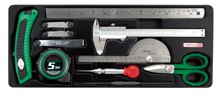Набор инструментов для измерения, маркировки, резки, 11 предметов в ложементе TOPTUL