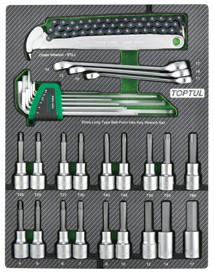 Набор торцевых насадок, шестигранники Г-образные и разрезные ключи, 31 пр. в мягком ложементе TOPTUL GEB3109 купить в Екатеринбурге и других городах России