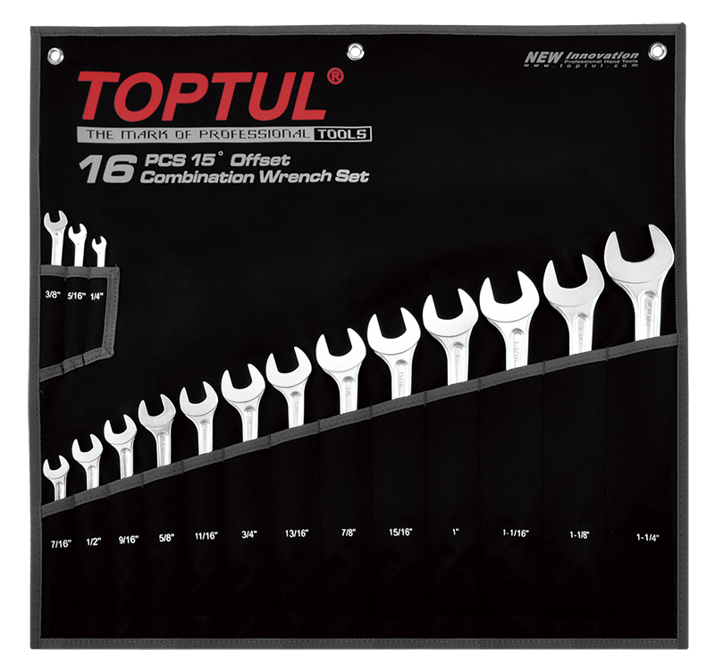 Набор ключей комбинированных дюймовых 1/4"-1-1/4", 16 предметов на полотне TOPTUL