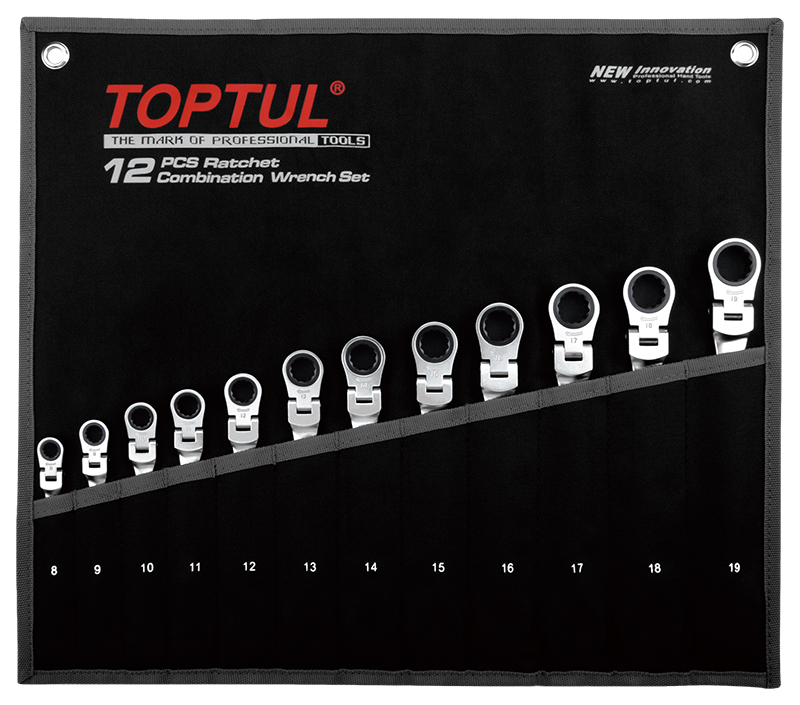 Набор ключей комбинированных трещоточных шарнирных 8-19 мм, 12 предметов на полотне TOPTUL GPAQ1204 купить в Екатеринбурге и других городах России
